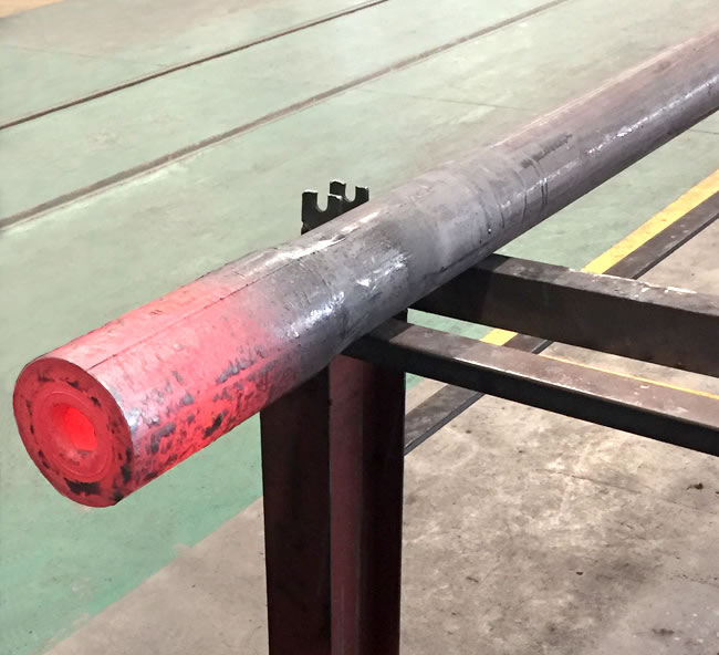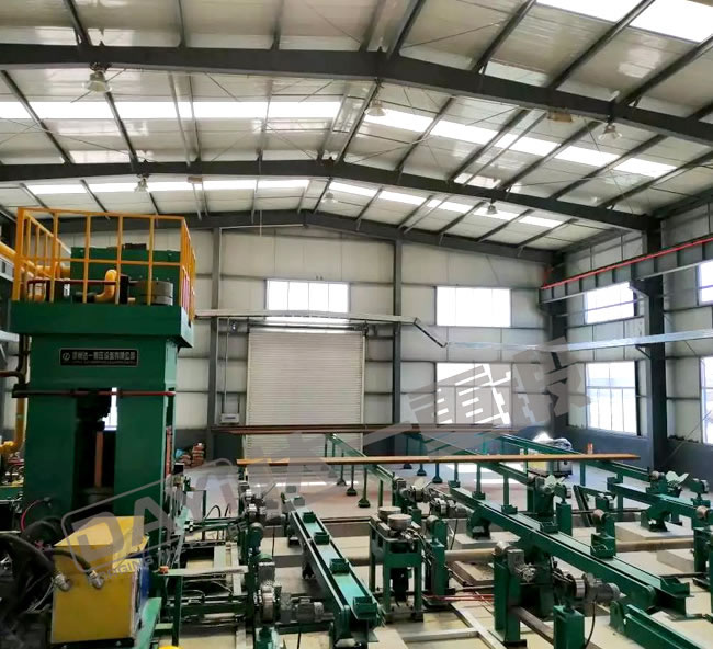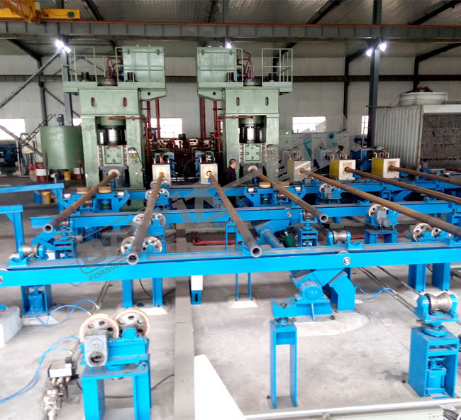管端加厚機(jī)是我公司針對石油鉆桿、油管的加厚工藝研發(fā)的新型特種設(shè)備,管端加厚的目的主要是為了保證鋼管在管端車加工截面處的強(qiáng)度,鋼管加厚類型有外加厚、內(nèi)加厚、內(nèi)外加厚三種工藝。加厚機(jī)組有加厚機(jī)、輔機(jī)及加熱系統(tǒng)等組成,即對鋼管進(jìn)行橫向運(yùn)輸、加熱及端部加厚。