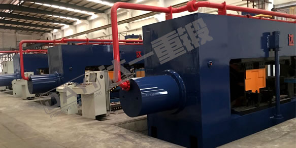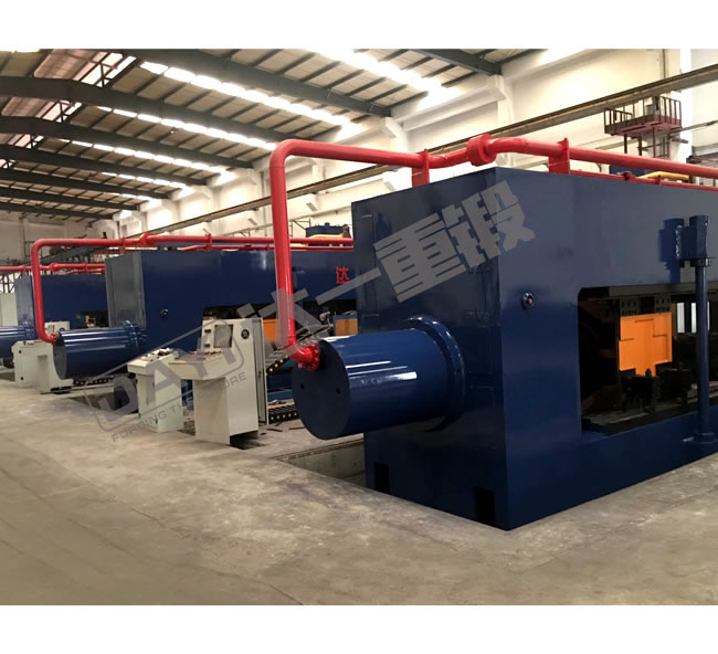 汽車車橋擠壓生產線是我公司針對掛車車橋生產工藝自主開發的新型設備,具有自主知識產權。該生產線包含中頻加熱爐、送料機械手、車橋擠壓機等部分,將原車橋摩擦焊接、單邊旋壓等工藝替換為雙頭熱擠壓工藝,可一次性擠壓出高質量車軸,有效地提高了生產效率、降低了生產能耗。