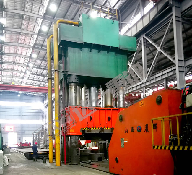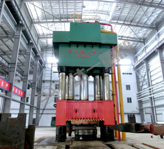 產品介紹:拉桿預緊組合框架結構,采用16面可調斜鐵式銅導軌導向:主要由機身、主油缸、液壓系統、電氣控制系統、安全系統及其他輔助設備組成;液壓系統由高壓油泵、調壓閥、方向閥、油箱等組成,為壓機提供可控制的液壓動力源;電氣控制系統由電控柜、操縱箱、PLC、觸摸屏、報警系統等組成。機身前面配有一個擺臂,用于移動預沖沖頭;配有的對中抬起裝置,置于墩粗和預沖工位,采用液壓驅動,可實現水平對中,同時可夾持工件上下運動,用于工件更換工位。終沖裝置由終沖缸,副滑塊,導向梁及擋料架等組成,并且預留有終沖沖頭安裝面,擋料架用于終沖后副滑塊回程時將工件退下。